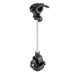 Reduces bounce on bow-mount trolling motors. Equipped with a low profile mounting base that allows the stabilizer to be easily removed. The pivoting arm can be folded down when not in use.