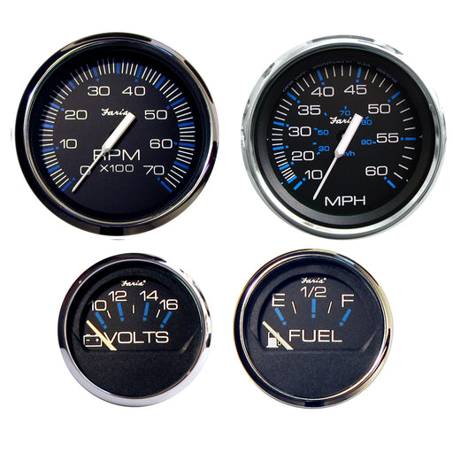 Faria Beede Instruments5 in stockChesapeake Black SS Boxed Set - Outboard MotorsPerimeter-lighted Black dial with stylish Blue and White graphics, polished stainless steel bezel, ...